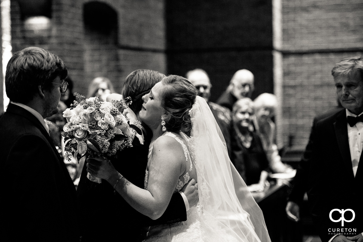 St. Christopher’s in Spartanburg has one of the most beautiful sanctuaries that we have ever been in.  From the immaculate woodwork to the gorgeous natural light by the side windows it was the perfect setting for this wedding ceremony.